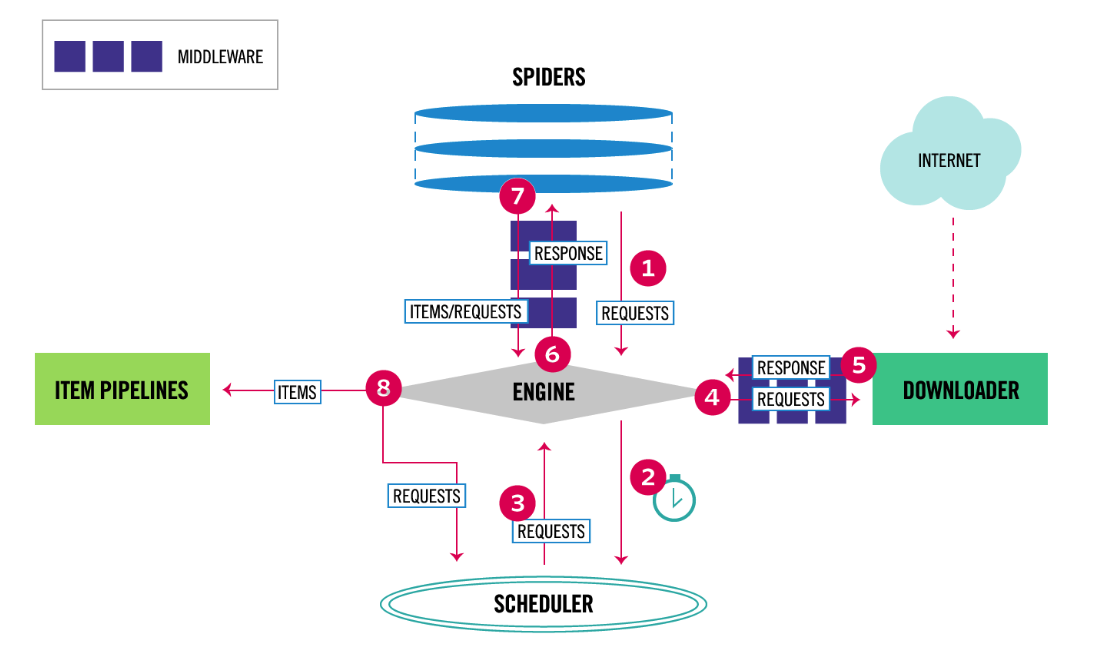 引擎,它将数据再传递给管道(在管道中我们可以将数据存储到csv