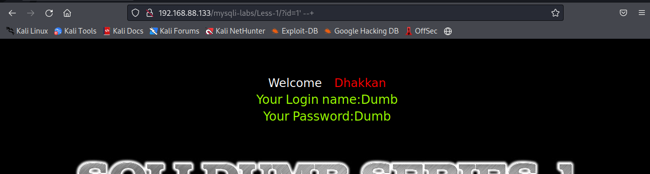 http://192.168.88.133/mysqli-labs/Less-1/?id=-1' union select 1,2,3 --+