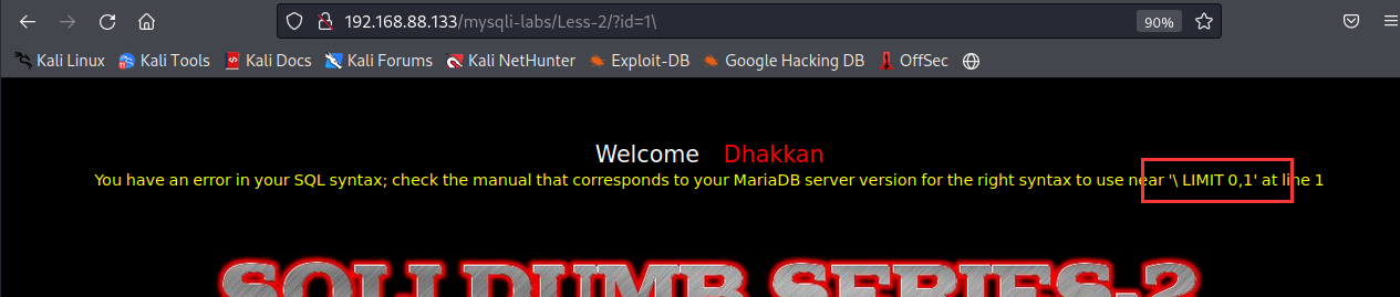 输入特殊字符,存在报错信息,发现这里未过滤且是id值是整型,区别于第一关的字符型