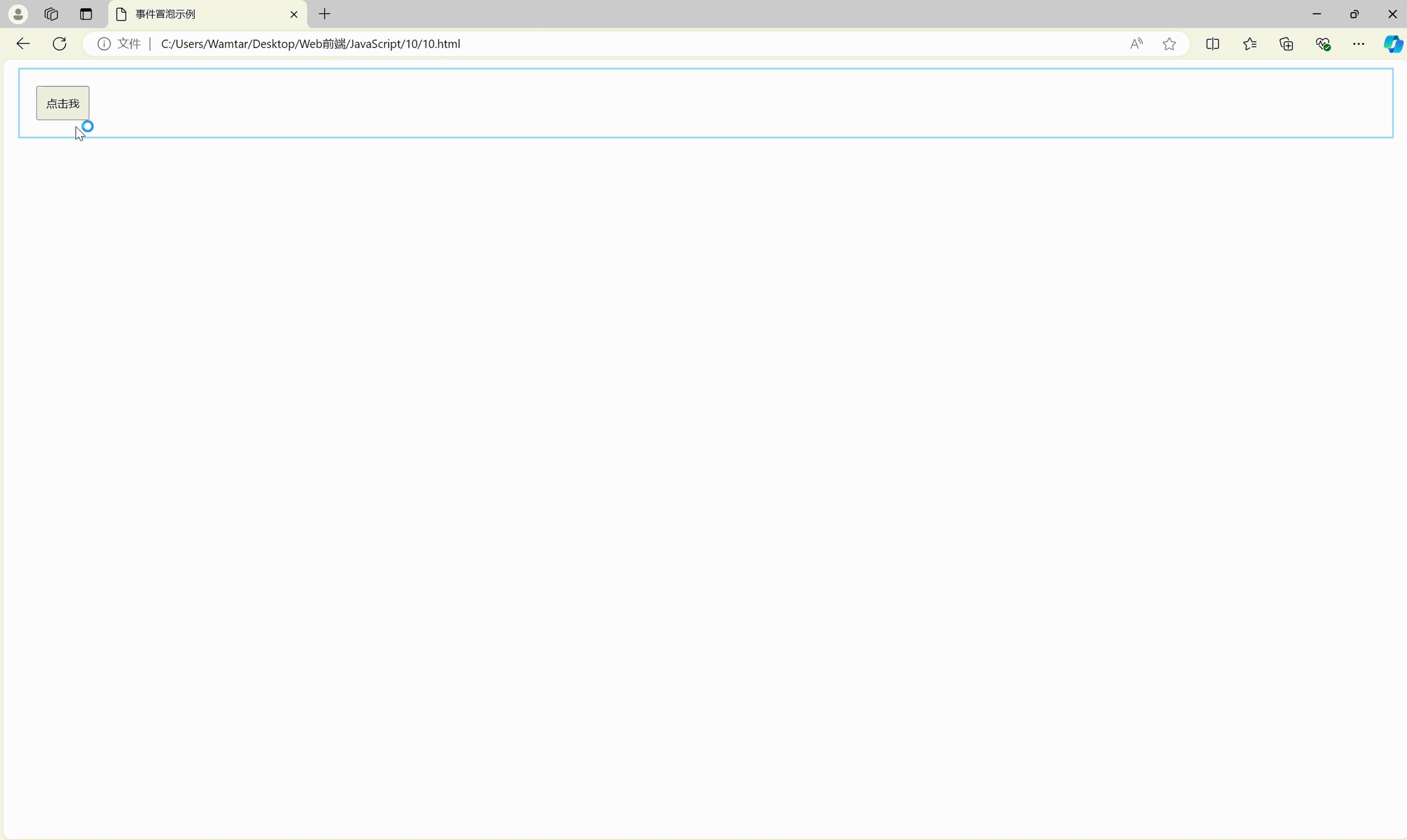 点击按钮时,用户会看到“父元素被点击”,然后是“子元素被点击”。因为这里的事件监听器是以捕获模式添加的,父元素的监听器在子元素之前被触发。