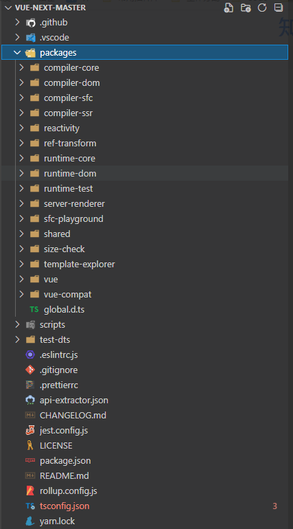 项目使用不同的文件夹进行管理,一般情况下,以Vue3为例Monorepo的项目架构是这样