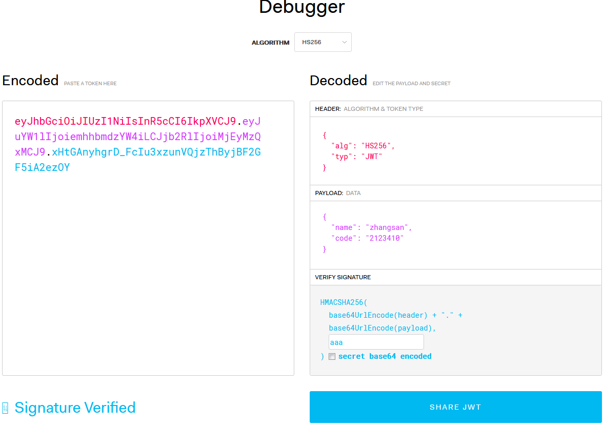 "alg": "HMAC" // 算法名称(HMAC、SHA256、RSA)