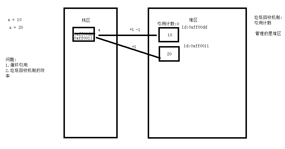 容器对象(list,set,dict,class,instance)都可以包含其他对象的引用,所以都可能产生循环引用。在了解‘标记-清除’之前,先得知道一个知识点:内存中有两块区域:堆区与栈区,在定义变量时,变量名放在栈区,变量值放在堆区,内存管理是对堆区的管理。