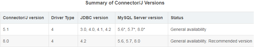 官方推荐MySQL5.6以上使用connector/j 8.0