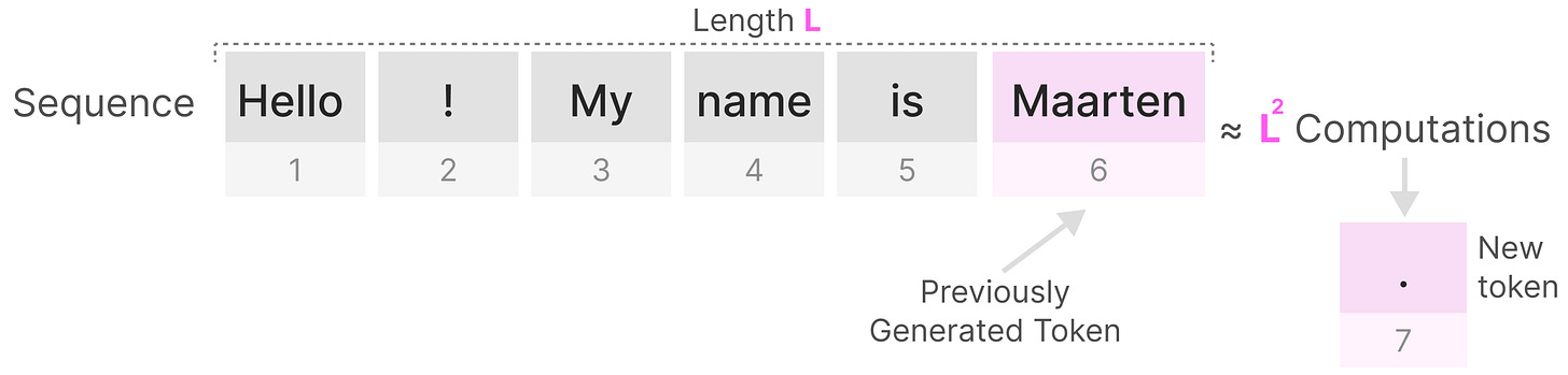 长度为L的序列重新生成新的标记大约需要L^2次计算,所以随着序列长度的增加,花销可能会变得越来越大。