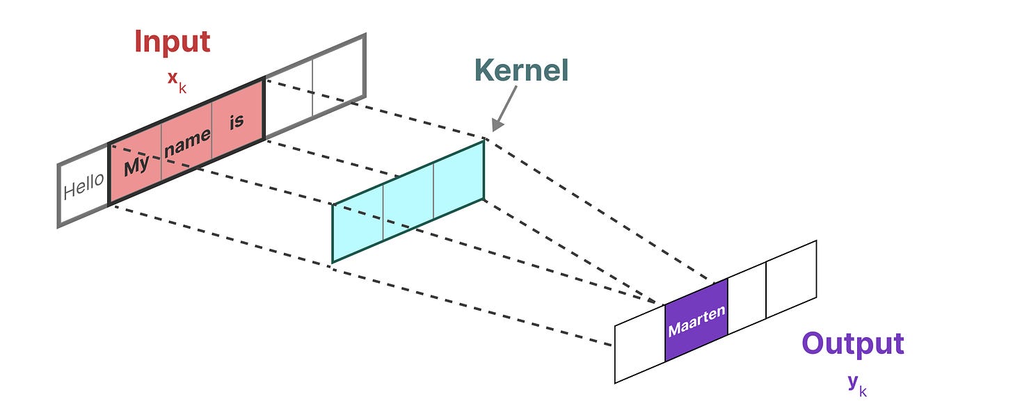 由于这些矩阵现在是动态的,因此不能使用卷积表示来计算,因为卷积表示假设有一个固定的核。我们只能使用循环表示,从而失去卷积提供的并行化优势。