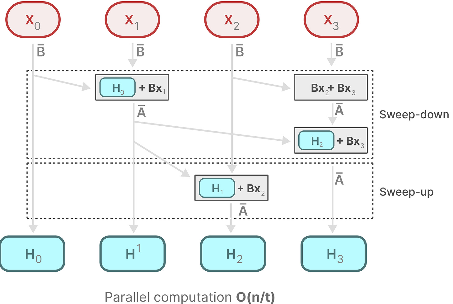 并行化似乎是不可能的,因为每个状态只有在有了前一个状态的情况下才能计算。然而,Mamba 通过并行扫描算法使得这一点成为可能。
