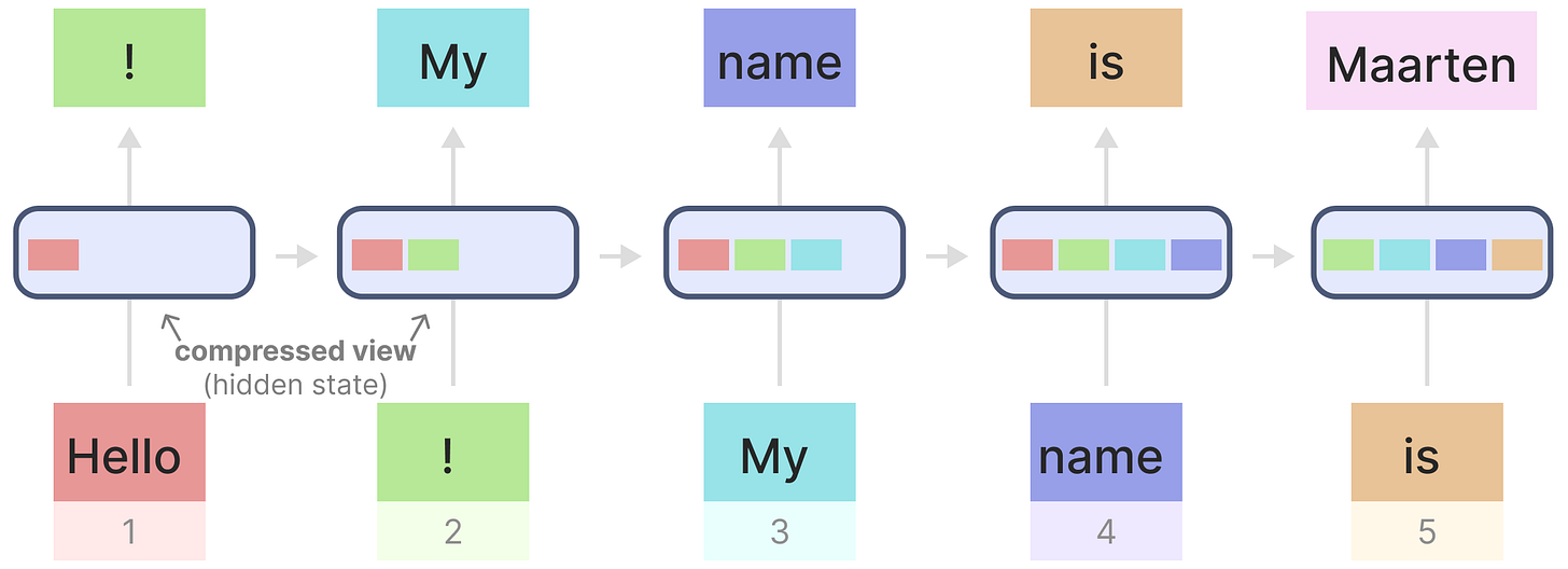 现在让我们看看传统技术,循环神经网络(RNN)是怎么解决慢速推理这个问题的。