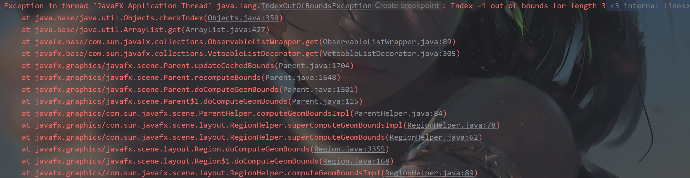 - 数组越界异常,目前没有解决,但是并不会每次都出现,DeBug到了源码层面,实在是看不懂,放弃了。