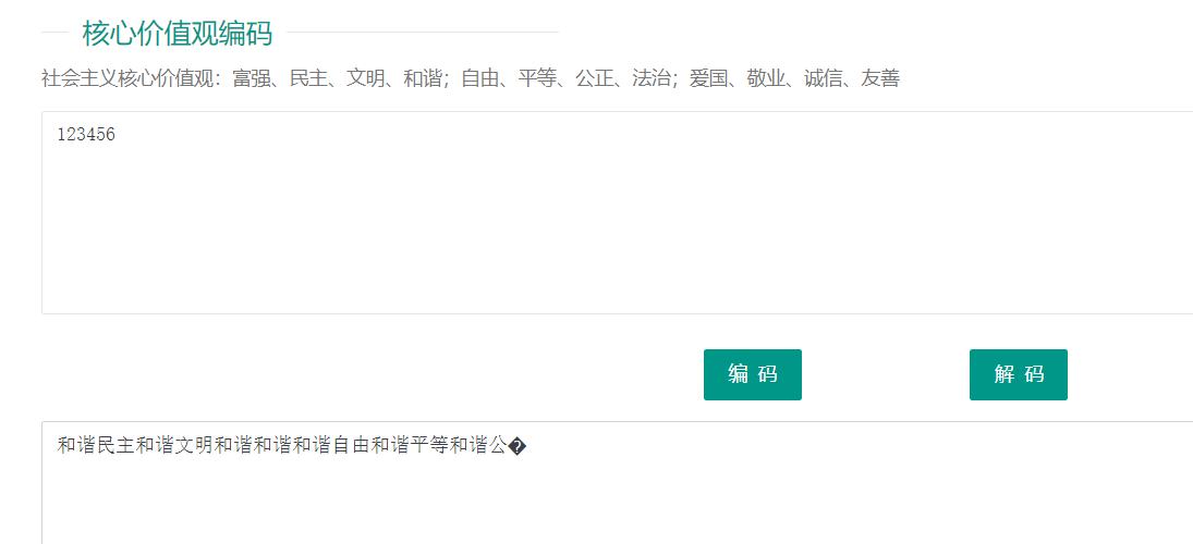 下拉的过程中发现brainfuck代码,使用在线网站解密得到核心价值观代码