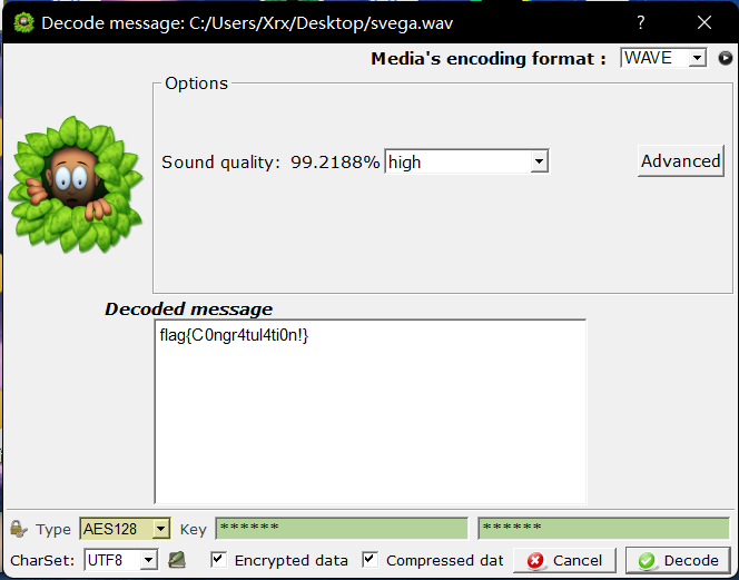 使用MP3stego 工具,密码是核心价值观解密得到的 123456