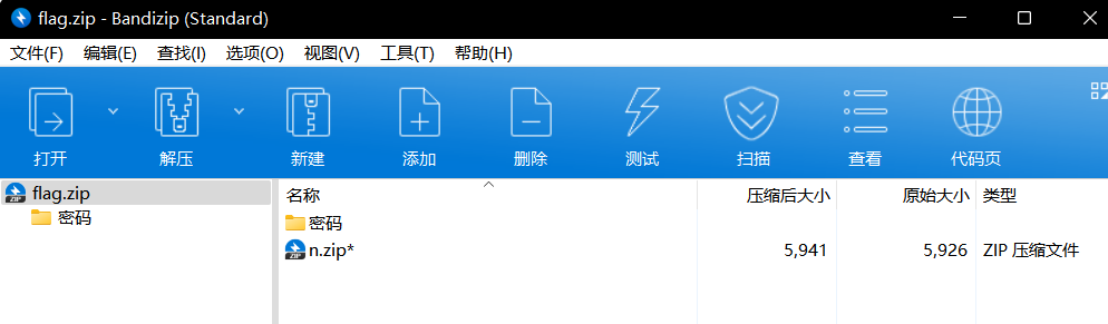 下载下来以后有一个密码文件夹,一个加密的压缩包。打开密码文件夹,我们发现每一个文档都是一字节,
