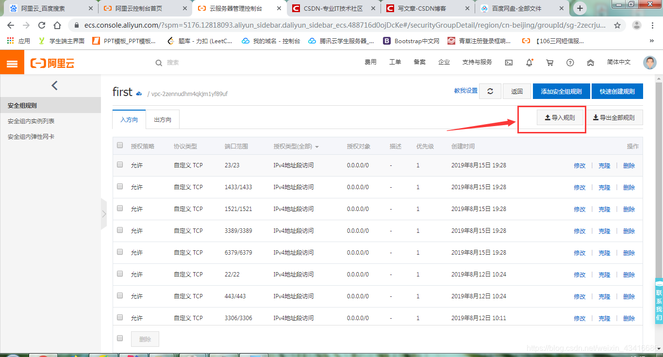 至此阿里云服务器安全规则配置完成。腾讯云配置大同小异,在此附上一份腾讯云安全组规则链接
