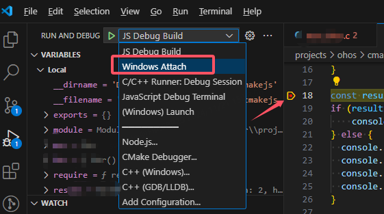 注意:.vscode 一般是在项目的子层级下,如果 cmake.js 编译的鸿蒙项目在更深的层级下,就需要先 cd 到鸿蒙项目的层级下,编译好 pdb 文件,再 cd 到最外面项目的层级下,最后进行调试