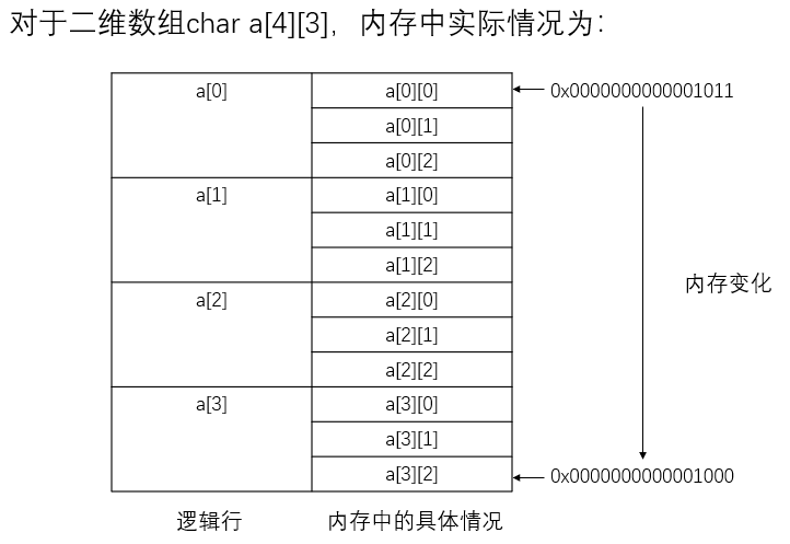 数组中需要注意的一个点是,不论是一维数组还是多维数组,在内存中的存储都是按照一维存储的,具体的存储方式的话,如图: