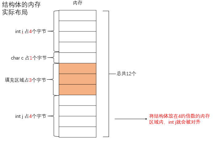 但是,其实真正的情况不可能是这样的,因为要进行内存的对齐,如图: