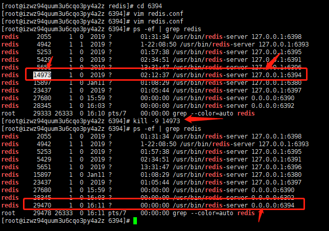 执行命令:/usr/local/redis/bin/redis-cli -h 内网ip -p 6379