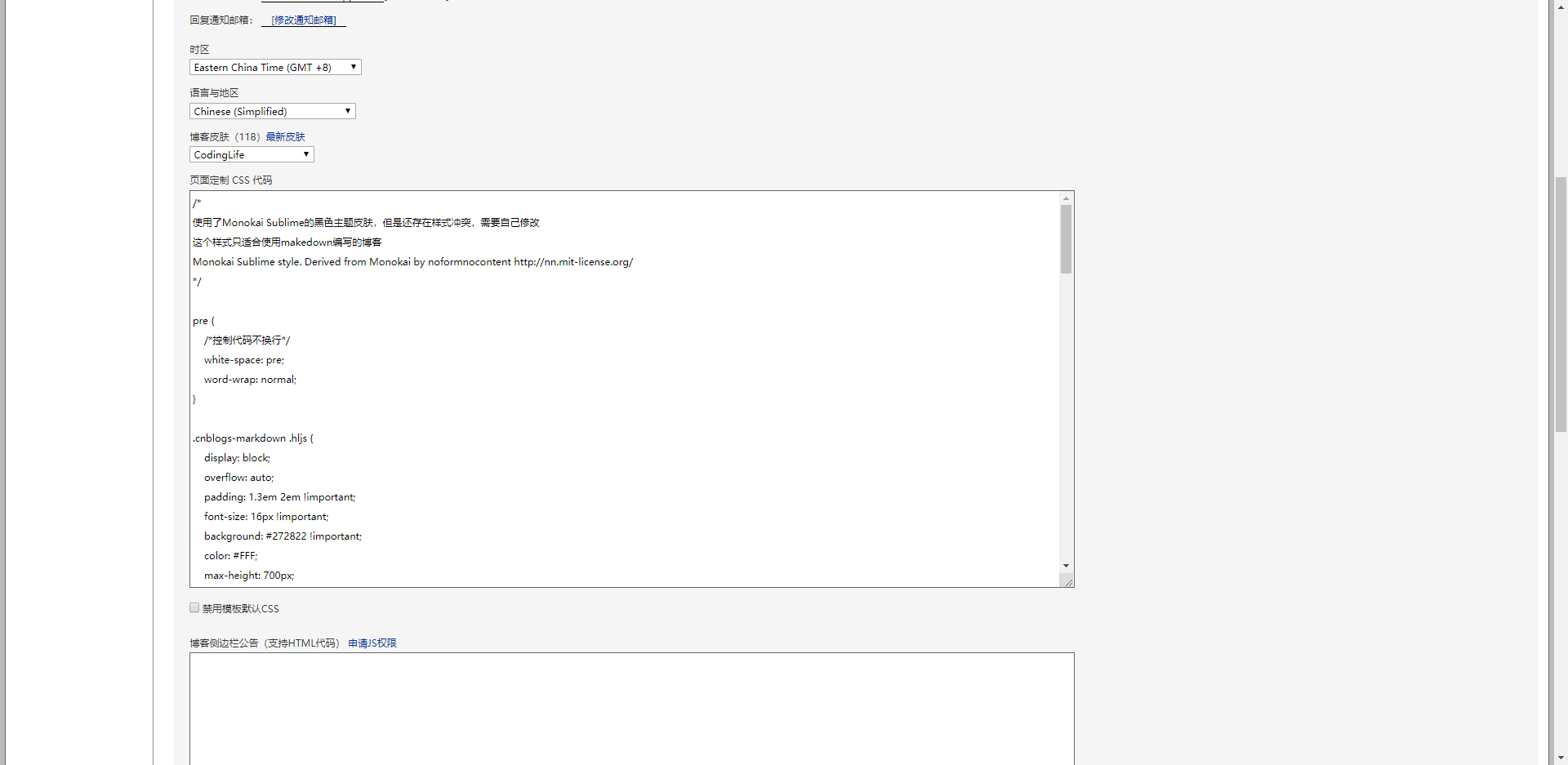 博客园后台设置如图
