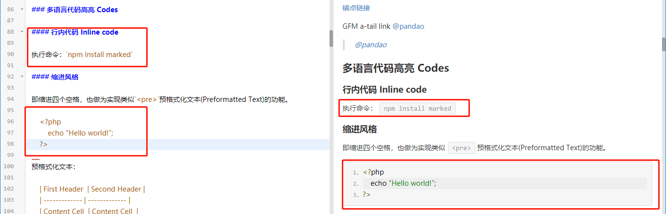 例如,行内高亮加``,代码样式高亮缩进四个空格等等,自行根据需求选择