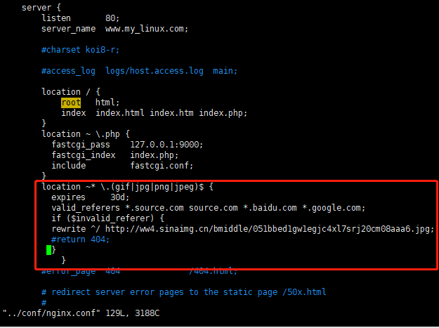 第一行: location ~ .*.(gif|jpg|jpeg|png|bmp|swf)$