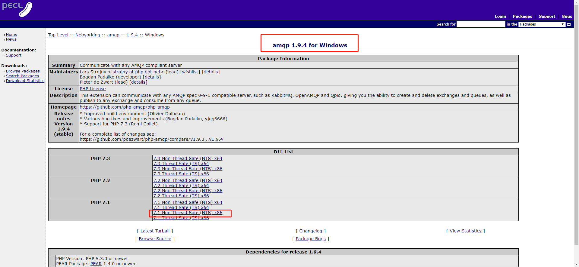 关于amqp下载哪个版本需要根据自身php的版本来选择,比如下载32位的还是64位的,包括选择Thread Safe (TS)版本的还是NON Thread Safe(TS),可以打印phpinfo()信息查看