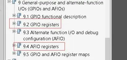 从上图F20X系列使用了复用功能寄存器,然不是像F10系列存在专门的复用寄存器,F20X系列GPIO复用的功能更广。