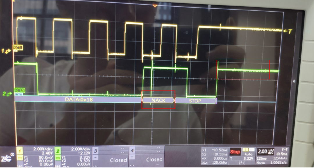 波形图,发送NACK后,再发送STOP,电平恢复高电平
