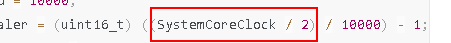 TIM3CLK = 2 * PCLK1=2*HCLK / 4= HCLK / 2 = SystemCoreClock /2=60MHZ