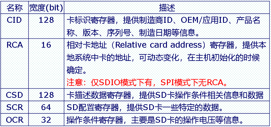 这些寄存器的详细介绍,请参考《SD卡2.0协议.pdf》第五章