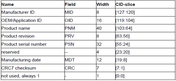 CMD2用于获取CID寄存器数据,CID寄存器各位定义如下表: