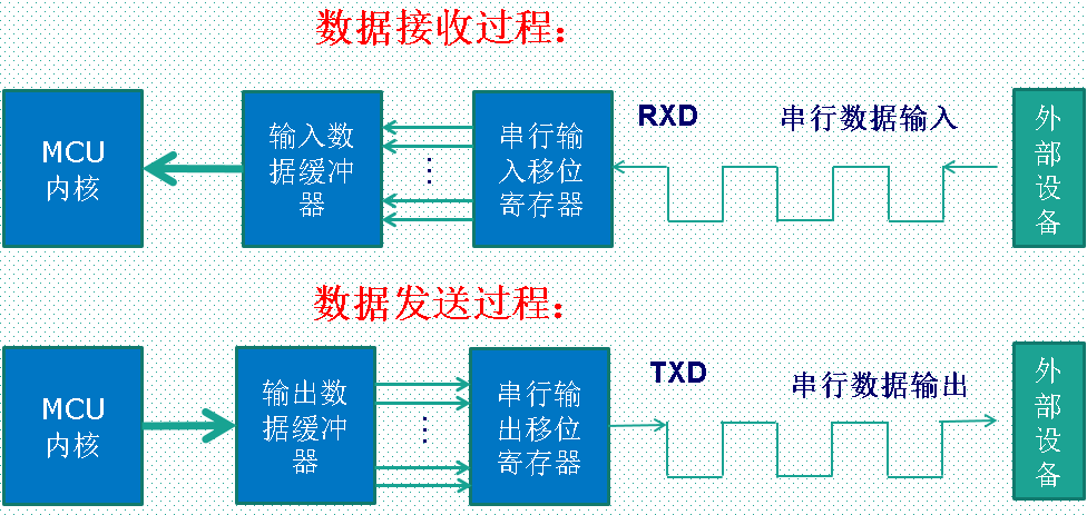 检测标志:① 接受缓冲器 ②发送缓冲器空 ③传输结束标志