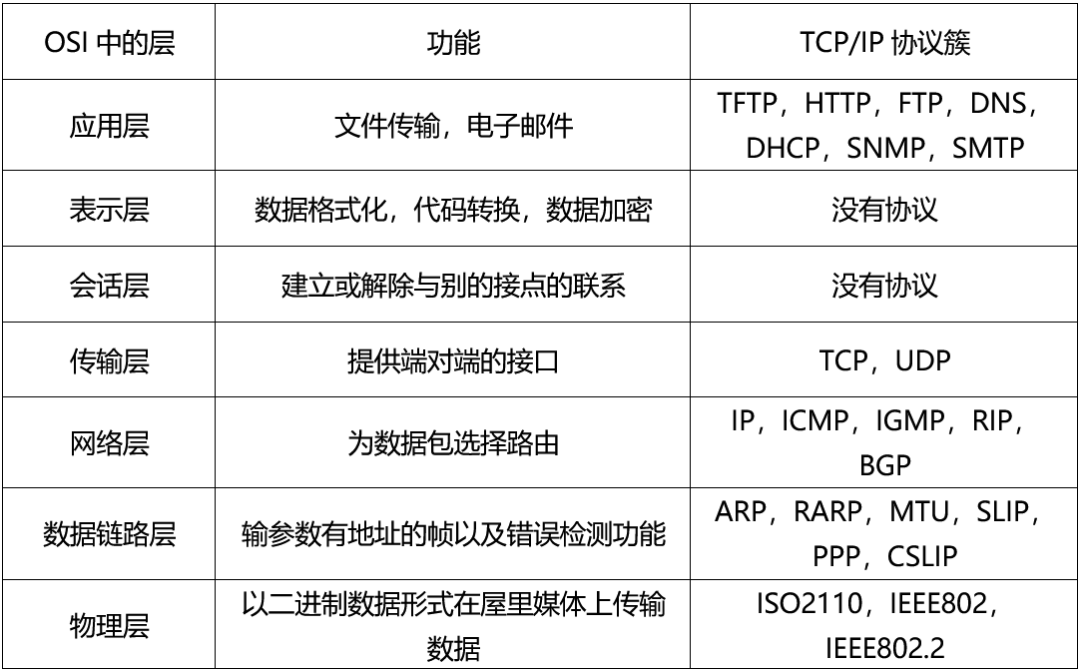 关于OSI七层模型:应用层、表示层、会话层、传输层、网络层、数据链路层、和物理层,如下图
