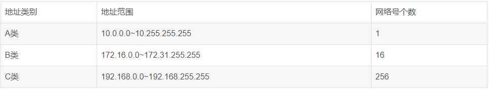 以上6中特殊的IP地址不能分配给任何主机,下面的专用地址却可以被分配给多个主机,当然,这些主机之间互不关联,他们处于不同的局域网内。