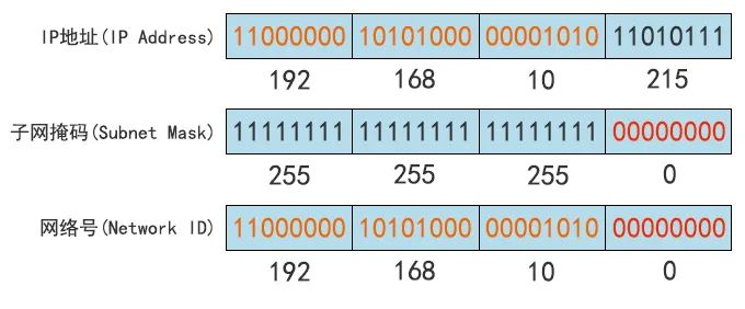 ②、将二进制形式的IP 地址与子网掩码做“与”运算。