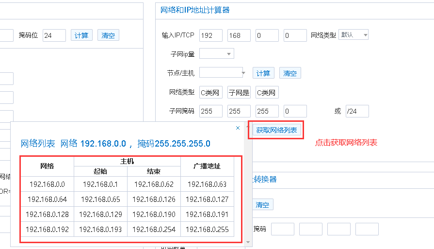 C类:网络地址为:x.x.x.0,广播地址为:X.X.X.255。