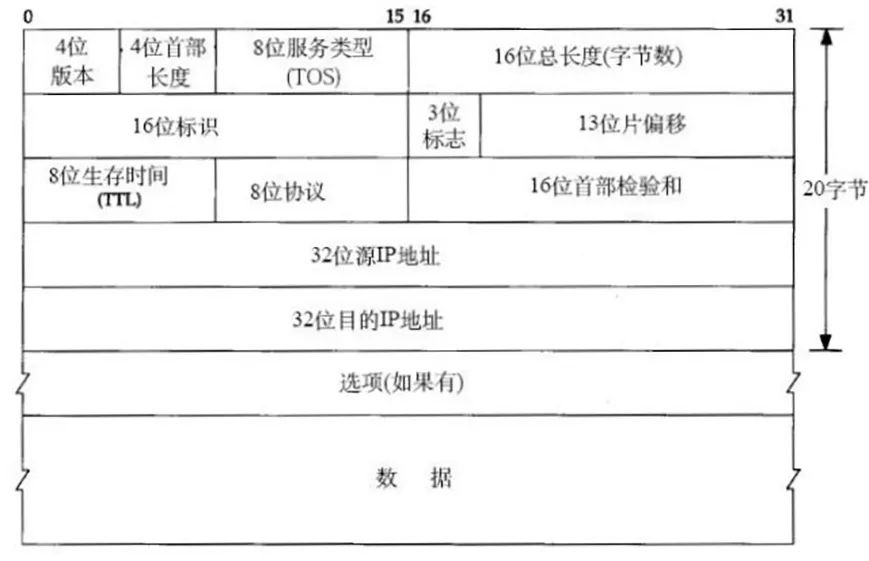 (2)首部长度:占4位,可表示的最大十进制数值是15。请注意,这个字段所表示数的单位是32位字长(1个32位字长是4字节),首部长度包括选项字节,因此,当IP的首部长度为1111时(即十进制的15),首部长度就达到60字节。当IP分组的首部长度不是4字节的整数倍时,必须利用最后的填充字段加以填充。因此数据部分永远在4字节的整数倍开始,这样在实现IP协议时较为方便。首部长度限制为60字节的缺点是有时可能不够用。但这样做是希望用户尽量减少开销。最常用的首部长度就是20字节(即首部长度为0101),这时不使用任何选项。由于以太网MTU是1500,常用IP头20字节,所以IP数据最大1480字节。