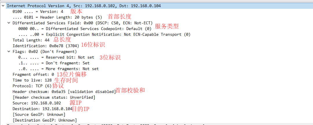 标识、标志和片偏移在IP数据分片时使用,在后面IP分片会详细讲解。
