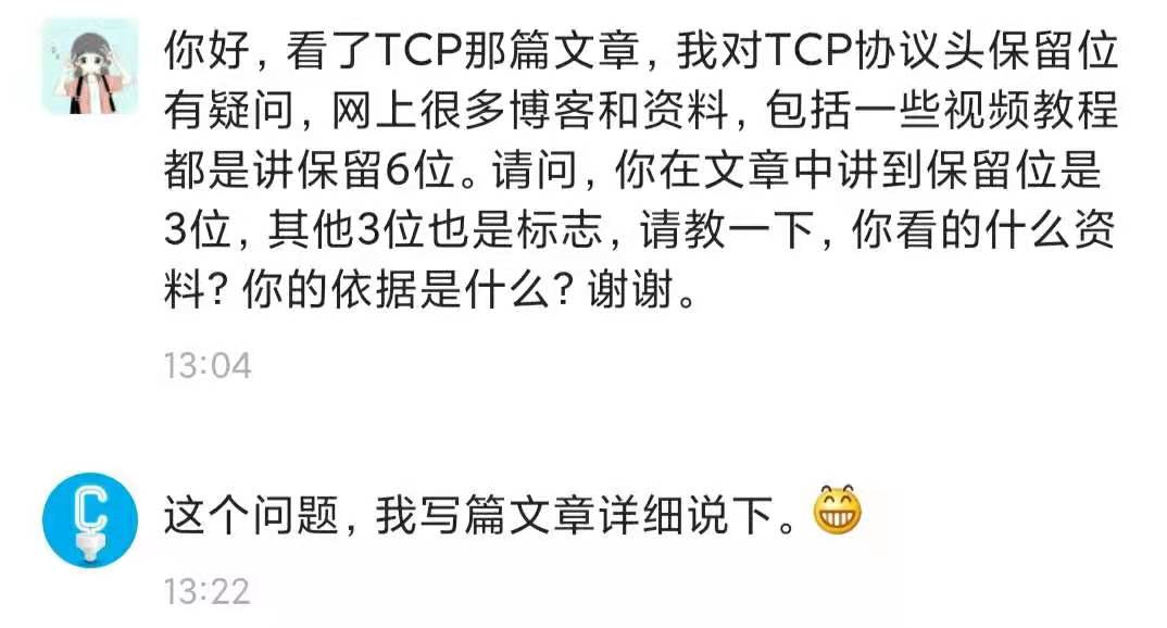 部分读者对上一篇《TCP协议详解》中的保留字节和标志位有疑问。