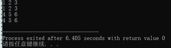 // 3 #include <stdio.h> #include <stdlib.h> const int N=3; int main() { int a[N]; int *p,i; for(p=a; p<a+N; p++) scanf("%d", p); for(p=a; p<a+N; p++) printf("%d ", *p); printf("\n"); p = a; for(i=0; i<N; i++) scanf("%d", p+i); for(i=0; i<N; i++) printf("%d ", *(p+i)); printf("\n"); return 0; } //1. 程序中,指针变量p在使用时指向确定的地址即 a //2. 程序源码中,line12-line13执行完后,指针变量p指向 a+3 // line16-line17执行完后,指针变量p指向 a+3 //3. 程序源码中,line22-line23执行完后,指针变量p指向 a // line26-line27执行完后,指针变量p指向 a
