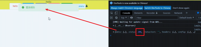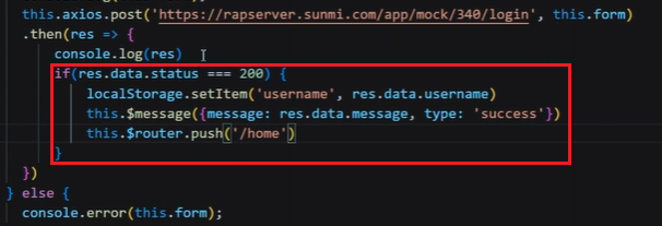 数据请求成功后就可以利用状态码200:(登录成功:200)来存储用户信息,提示成功并跳转到首页