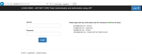 可以正常运行的LoginDemo.sln项目可供下载。请参见下面的屏幕快照,以快速了解LoginDemo.sln项目。