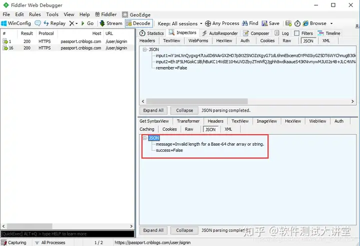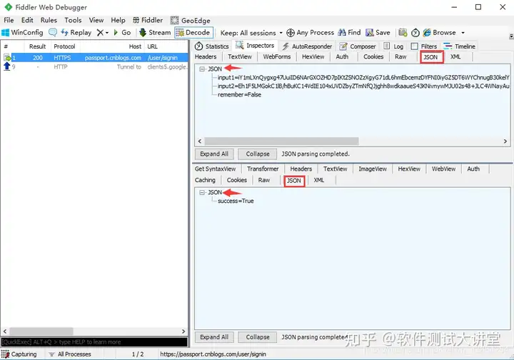 1.有些post的请求参数和返回参数是Json格式的,如博客园的登录请求:https://passport.cnblogs.com/user/signin