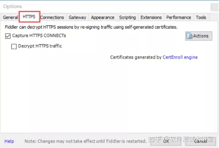 - 重置fiddler证书在fiddler窗口中,依次单击菜单项“Tools”》“Options...”,在Options窗口中,点HTTPS选项卡,点Actions》Reset All Certificates弹出用户账户控制窗口,点【是】