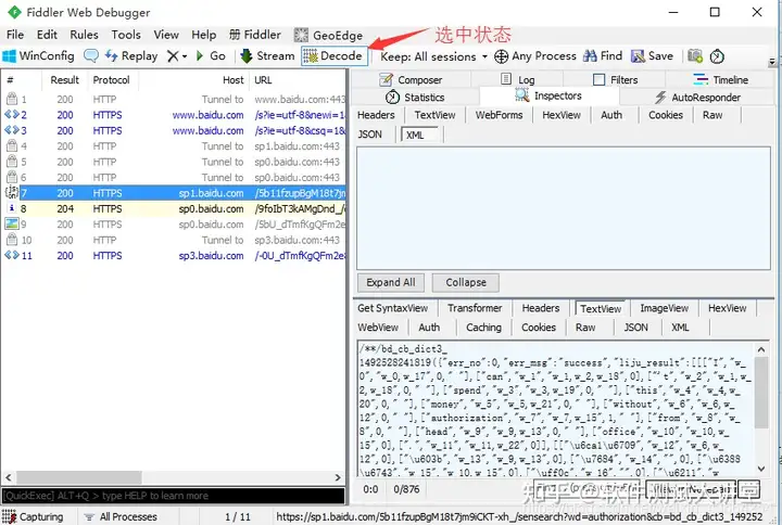2.也可以选中上方快捷菜单decode,这样后面的请求都会自动解码了