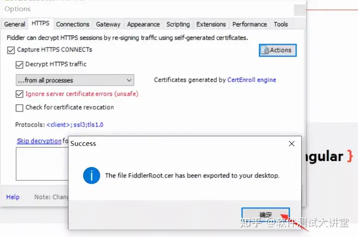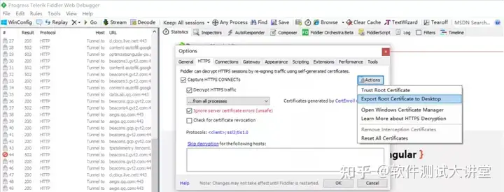 在Options窗口HTTPS选项卡,依次点“Actions”》“Export Root Certificate to Desktop”