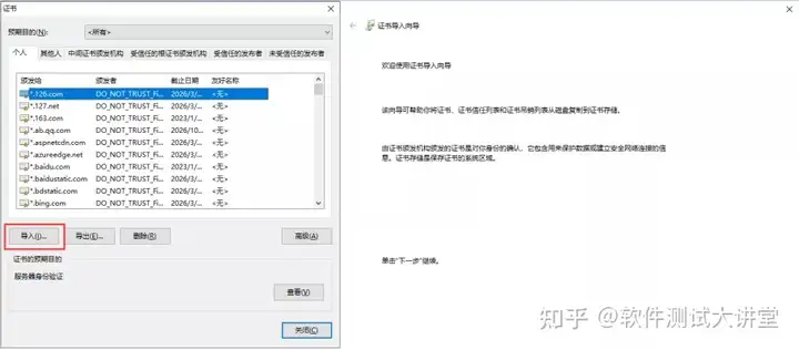 - 清除根证书【Win+R】,输入:certmgr.msc,在弹出的certmgr证书窗口中,依次单击菜单项“操作”》“查找证书”。在弹出的查找证书窗口中,在包含文本框中输入搜索关键字 fiddler,点【立即查找】。如下截图所示,删除所有查找到的fiddler证书。