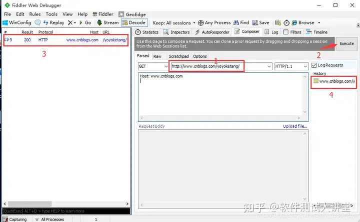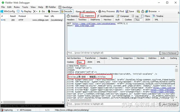 1.打开fiddler工具,然后浏览器输入博客首页地址