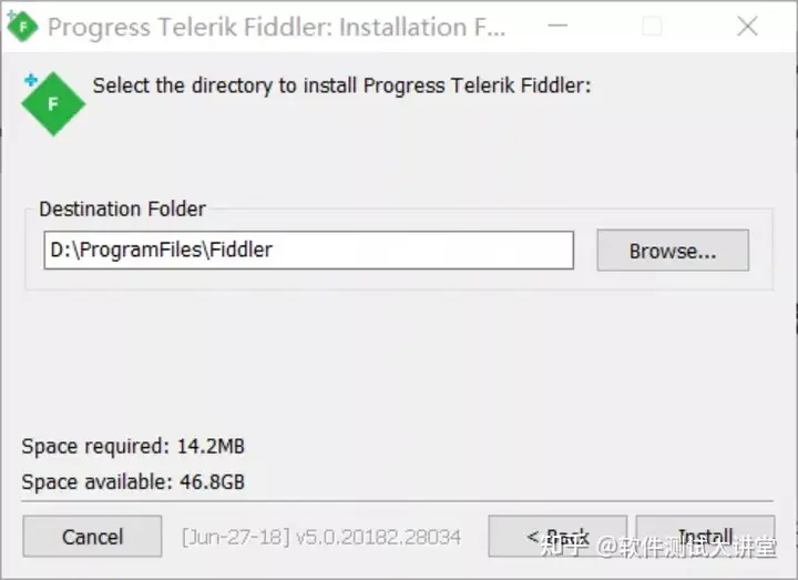 在安装目录窗口,选择fiddler安装目录,点【Install】