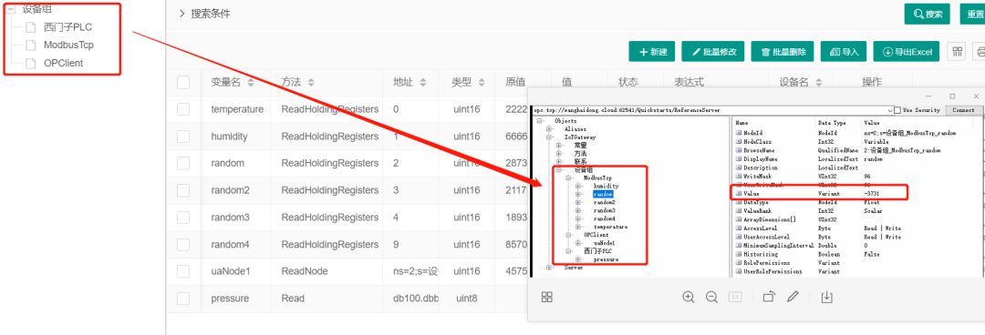 内置OPCUA Server,你的工控系统可以很方便的获取数据。注意,项目中OPCUA相关功能仅用作学习及测试, 若使用OPCUA协议请联系OPC基金会进行授权,产生一切纠纷与本项目无关。